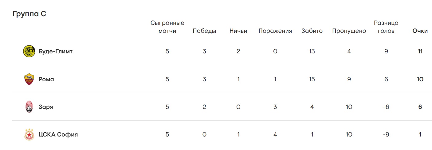 Таким чином, бронзовий призер УПЛ із шістьма очками вже точно не підніметься вище за третє місце в квартеті. У заключному поєдинку "Зоря" 9 грудня у Запоріжжі зіграє проти "Буде-Глімту".
