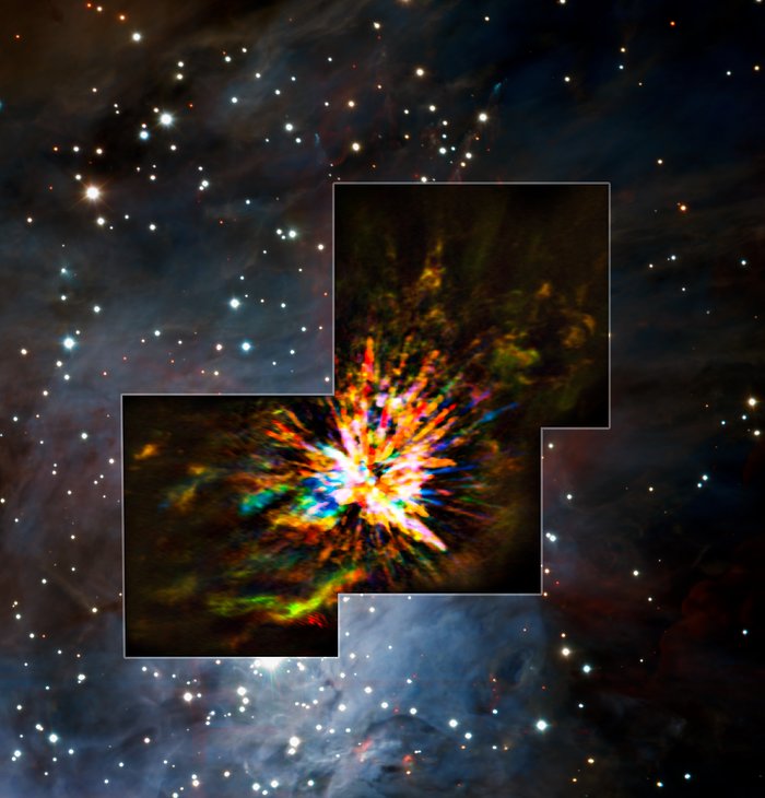 Ученим за допомогою телескопа ALMA вперше вдалося побачити вибух новонароджених зірок, який стався в сузір'ї Оріона. Як повідомляється на сайті Європейської південної обсерваторії, відкриття було зроблено при дослідженні фейерверкообразных потоків речовини, що залишається після народження групи масивних зірок.