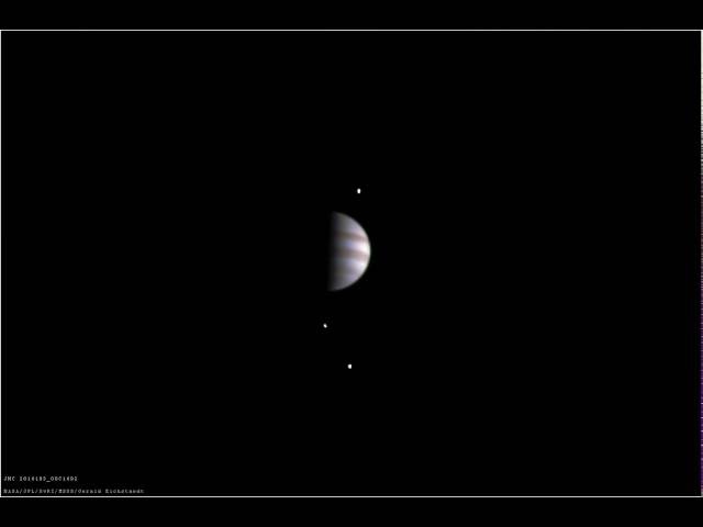 Камера "Юнони" робила знімки кожні 15 хвилин, при цьому апарат знаходився на відстані 15 мільйонів кілометрів від Юпітера, тому планета здається надзвичайно маленькою. Крім того, на відео також можна побачити супутники планети.