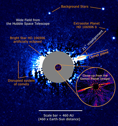 Астрономи з Каліфорнійського університету в Берклі виявили планету, маса якої перевищує масу Юпітера в 11 разів, що обертається навколо молодої зірки HD 106906. Зірка дуже схожа на Сонце, але її вік складає всього 13 мільйонів років. Система розташовується на відстані 300 світлових років від Землі в сузір'ї Хреста.