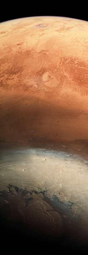 Знімок був зроблений за допомогою камери з високою роздільною здатністю, встановленої на борту апарату Mars Express, коли він пролітав з півночі на південь.