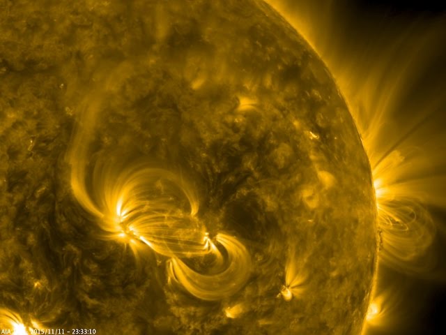 Обсерваторія сонячної динаміки NASA зафіксувала сяючі петлі на Сонці, які з'явилися в активних регіонах на поверхні зірки 11-12 листопада 2015 року. Заряджені частинки обертаються навколо магнітного поля Сонця, утворюючи яскраві лінії, які можна побачити в рентгенівському діапазоні. Повідомлення про це було опубліковано на офіційному сайті NASA.