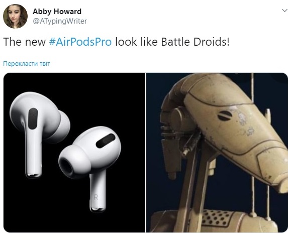Через особливості м'яких накладок, навушники отримали незвичайну форму, яку вже оцінили користувачі соціальних мереж і придумали цікаві аналогії. Деяким нові AirPods нагадують фен, деяким – качечку, а комусь- собаку Снуппі.