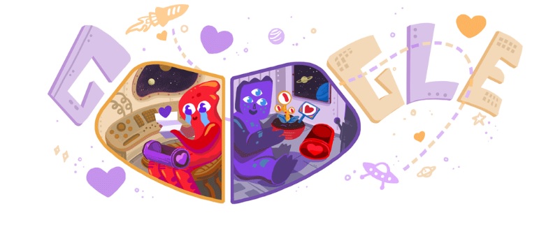 Пошуковий гігант Google представив дудл, створений на честь Дня святого Валентина. На ньому зображені два інопланетянина, які отримують подарунки до свята.