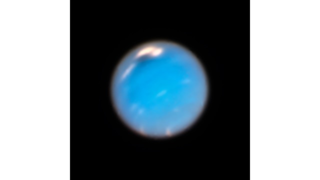 На Нептуні помітний темний антициклон, що сформувався в літній період у південній півкулі планети. Це вже четвертий антициклон, який спостерігає "Хаббл", ще два подібні явища були помічені апаратом "Вояджер 2". Біля шторму помітні яскраві "хмари-компаньйони", які формуються при русі вгору повітряного потоку, що зустрічається з вихором, через що починається утворення кристалів метанового льоду. Схожі хмари утворюються на Землі, над горами. Довга тонка хмара, помітна зліва від темного шторму, не є його частиною.