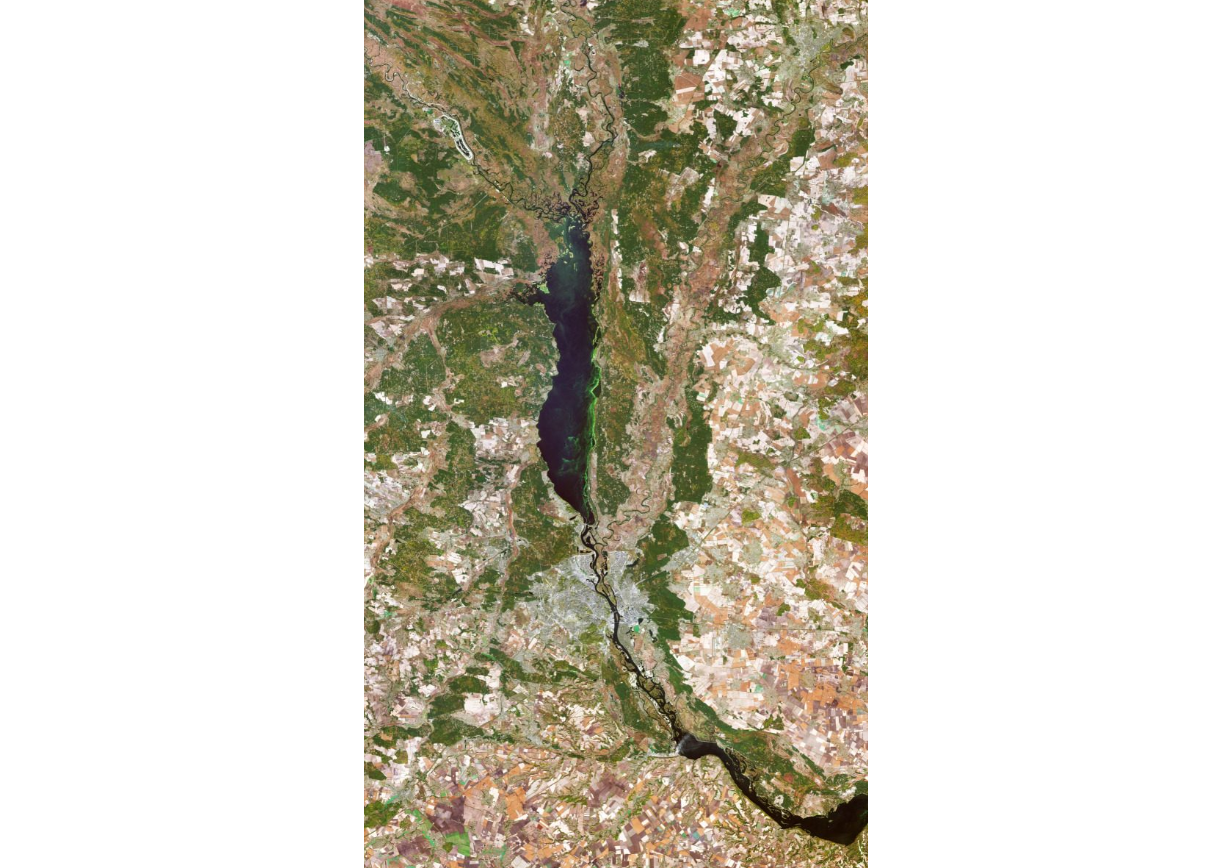 Відзначається також, що Дніпро - це четверта за довжиною річка Європи, після Волги, Дунаю і Уралу. Безпосередньо над Києвом можна побачити гігантське водосховище, яке використовується для зрошення посівів, виробництва гідроелектроенергії, а також промислового і суспільного споживання. В агентстві зазначили, що колір водосховища обумовлений великою кількістю водоростей.