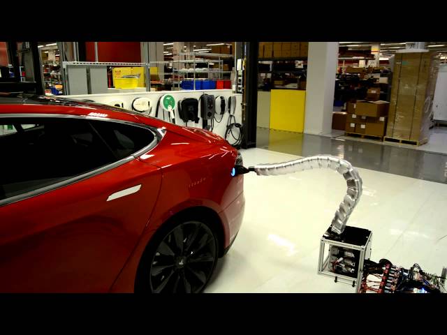 Компанія Tesla продемонструвала прототип роботизовану зарядку для своїх електромобілів. Зарядна станція схожа на змію-3, яка спритно наводить конектор живлення автомобіля і "люто" присмоктується до нього.