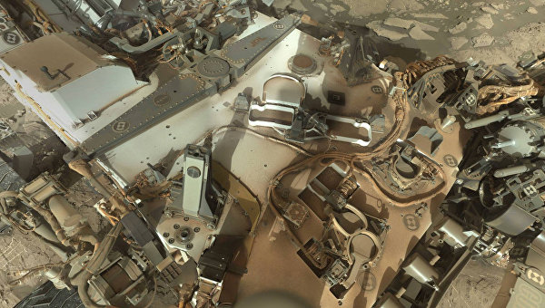 Марсохід Curiosity передав на Землю перші кольорові знімки, які були зроблені не за допомогою руки-маніпулятора, а за допомогою камери, встановленої на самому ровері, що дозволило йому вперше "подивитися" собі на спину. Про це повідомляє Планетологічне суспільство.