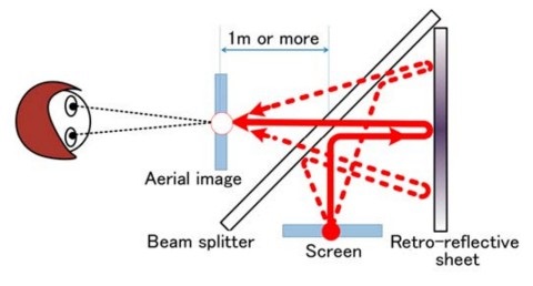 Випромінювання від екрану потрапляє на світлорозділювач, після чого прямує в бік відбивної панелі. В кінцевому підсумку, випромінювання потрапляє в умовну область, де має бути розташований "повітряний дисплей". У цій зоні світлові промені будуть сходитися, щоб у глядача з'явилося відчуття картинки, що "висить" у повітрі.