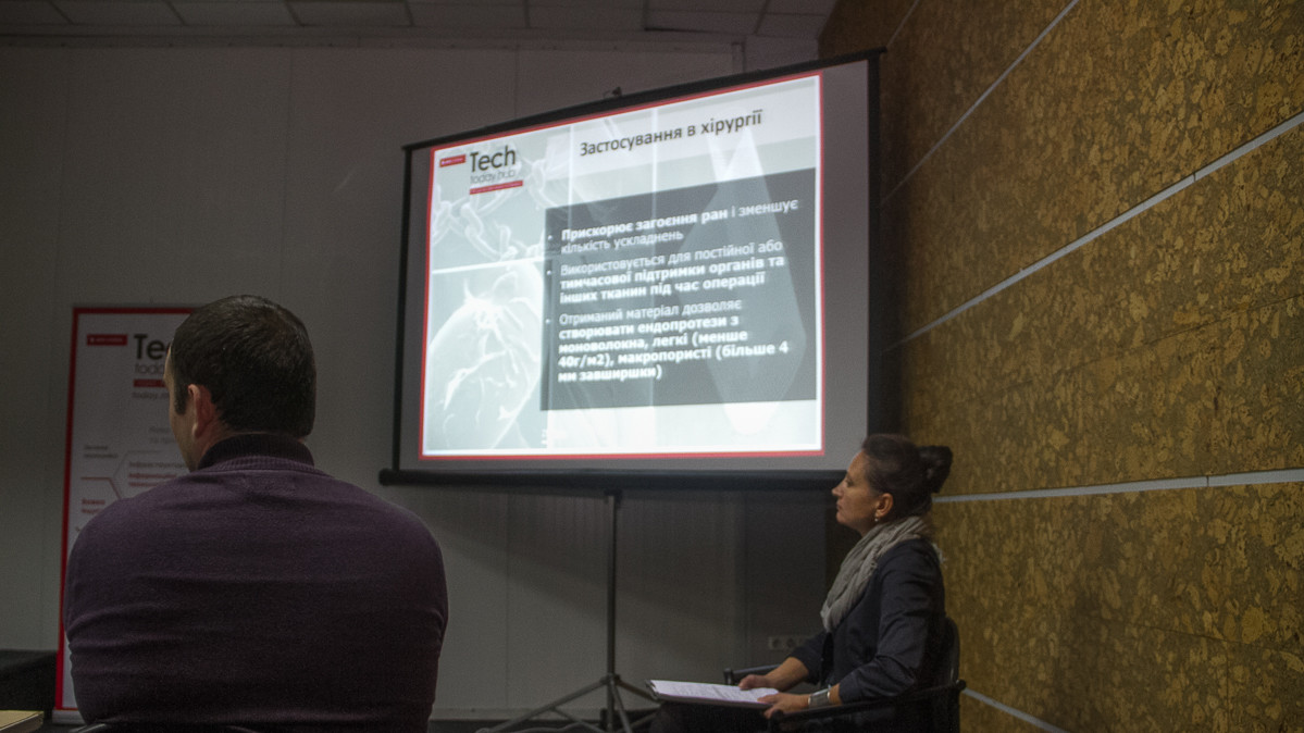 На зустрічі вчені також презентували імпланти для кістково-відновній хірургії, сітчасті ендопротези для хірургії, біосенсори для діагностики, фармацевтичні препарати в сфері онкології та кардіології.