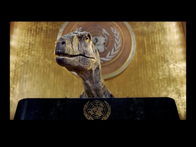 На трибуну ООН піднявся незвичайний доповідач, який закликав замислитись над проблемами змін клімату. У ролику, який був опублікований на каналі Програми розвитку ООН на YouTube, з'явився динозавр, що говорить, який закликав людство відмовитися від шляху до вимирання.