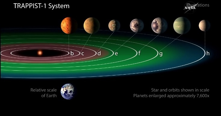 22 лютого на прес-конференції NASA розповіло про виявлення семи землеподібних планет біля зірки TRAPPIST-1 - червоного карлика в сузір'ї Водолія, який розташовується на відстані 40 світлових років від Землі. Три з семи виявлених планет обертаються в населеній зоні зірки, тобто на них може існувати життя.