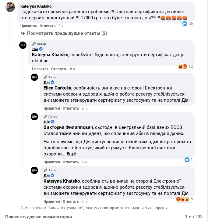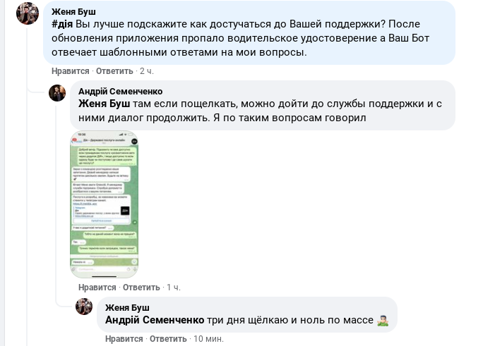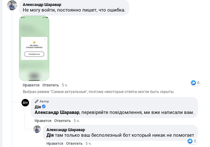 Користувачі мобільного додатку "Дія", який президент України Володимир Зеленський назвав "цифровою свободою від бюрократії", почали залишати масові гнівні коментарі після його оновлення. За їхніми словами, програма працює не коректно. Своєю чергою служба підтримки додатку вважає, що проблеми не у них, а на інших сервісах, звідки "Дія" бере інформацію. Скарги люди залишають на Facebook-сторінці державної програми.