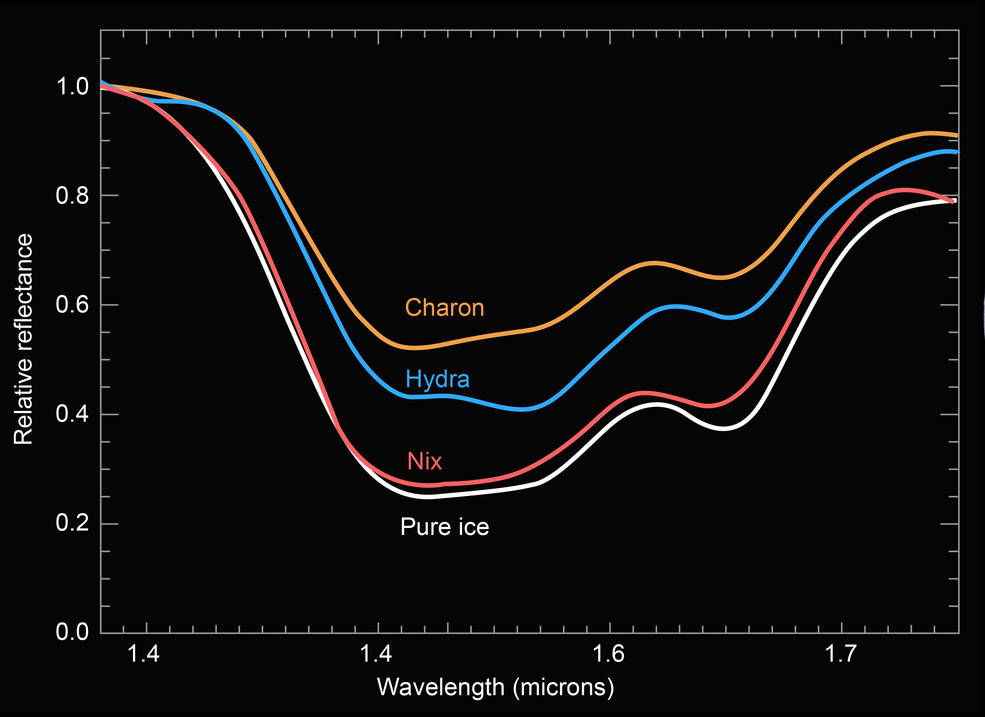 На думку вчених, спектральний аналіз Стіксу і Цербера, найменших супутників Плутона, також покаже присутність водного льоду на їхній поверхні.