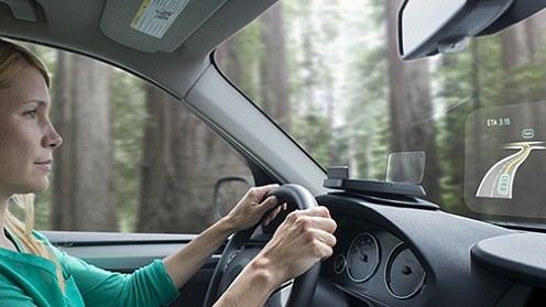 Пристрій проектує прозоре зображення на лобове скло в полі зору водія, при цьому зображення немов пливе над дорогою, не змушуючи переводити погляд.