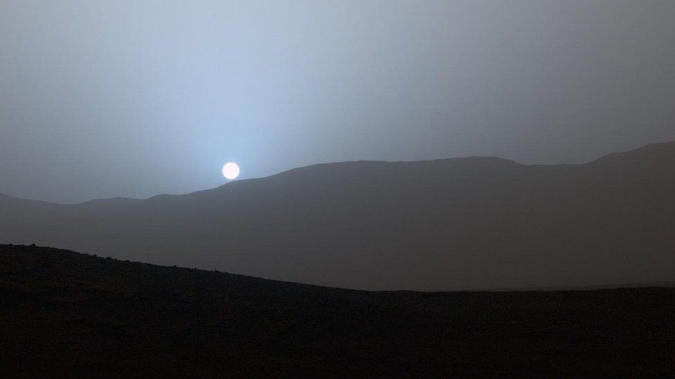 Це відбувається тому, що під час заходу на Землі хвилі світла, що відносяться до синьої частини спектра, розсіюються молекулами газу в атмосфері. На Марсі їх не так багато. Замість цього там є пил, яка розсіює червоні хвилі, в результаті чого небо забарвлюється в блакитний, коли Сонці сідає.