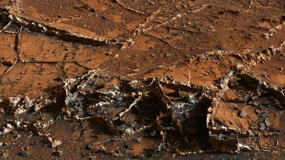 На основі даних з марсохода вчені прийшли до висновку, що на Червоній планеті присутні складні органічні сполуки, вік яких може перевищувати 3 тис. Років. Питання про їхнє походження залишається відкритим, і поки невідомо, чи є ці сполуки залишками організмів, результатом хімічної реакції з різними породами або вони потрапили на Марс разом з кометами і іншими космічними об'єктами. На думку вчених, можливий будь-який з цих варіантов.Еще до початку місії "К'юріосіті" було відомо, що атмосфера Марса відрізняється від звичної нам земний, але ровер зумів показати, наскільки гарні марсіанські заходи. Якщо на нашій планеті днем небо блакитне, а захід забарвлюється в червоний колір, на Марсі все навпаки: вдень небо червоне, а заходи - блакитні.