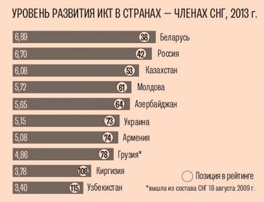 При складанні рейтингу враховувався показник ICT Development Index, що відображає стан фіксованого, мобільного зв'язку, доступу в інтернет, рівень комп'ютерної грамотності населення і т. д.