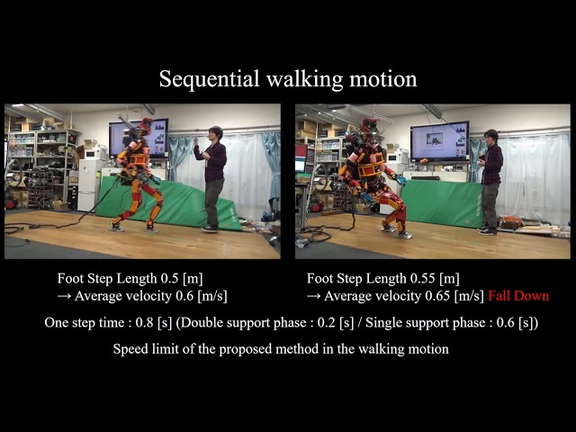 Розробники створили алгоритм утримання балансу, який враховує конуси тертя і розраховує для кожного кроку або руху на колісній платформі такий рух, щоб привести центр мас робота в стабільний стан. Інженери заклали в алгоритм управління три типи рухів: ходьба на двох ногах, їзда на скейтборді з відштовхуванням однією ногою від підлоги і їзда на роликових ковзанах. Автори перевірили працездатність алгоритмів на людиноподібному роботі JAXON, зріст якого становить 188 сантиметрів.