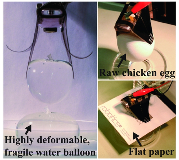 Дослідники з Федеральної політехнічної школи Лозанни (EPFL) розробили маніпулятор для роботів, здатний захоплювати крихкі предмети, наприклад, курячі яйця або повітряні кулі, не знищуючи їх при цьому. При створенні маніпулятора вчені використовували електроадгезію – утримання предмета здійснюється за рахунок електростатичної напруги. Результати роботи вчених були опубліковані в журналі Advanced Materials.