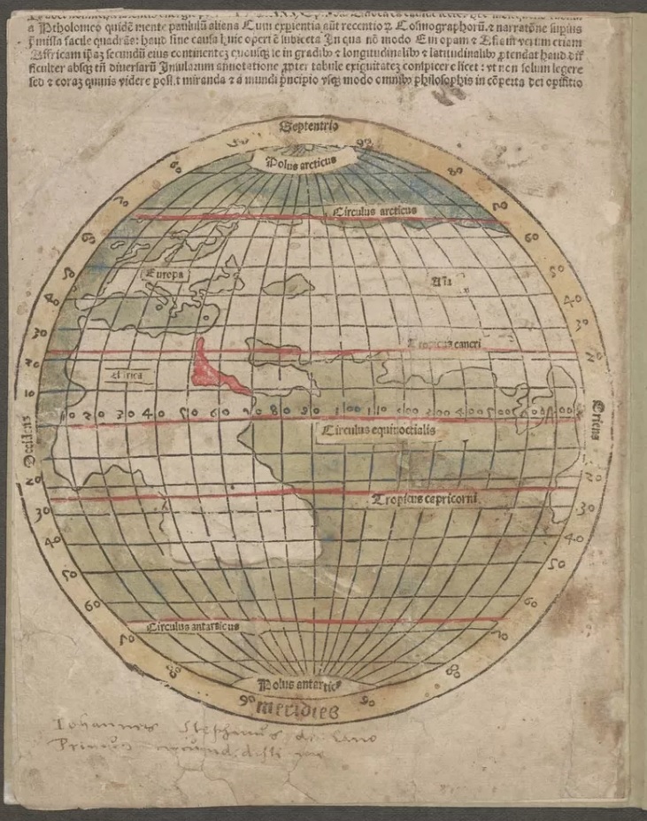 Карту знайшли в виданні Novus Mundus, яке було надруковано 1505 року Германом Баркхаузеном і тепер зберігається в університеті. Novus Mundus - це листування Веспуччі з його патроном Лоренцо Медічі, яке містить розповідь мандрівника про його подорож через Атлантику, під час якої він виявив, що Америка не є частиною Азії.