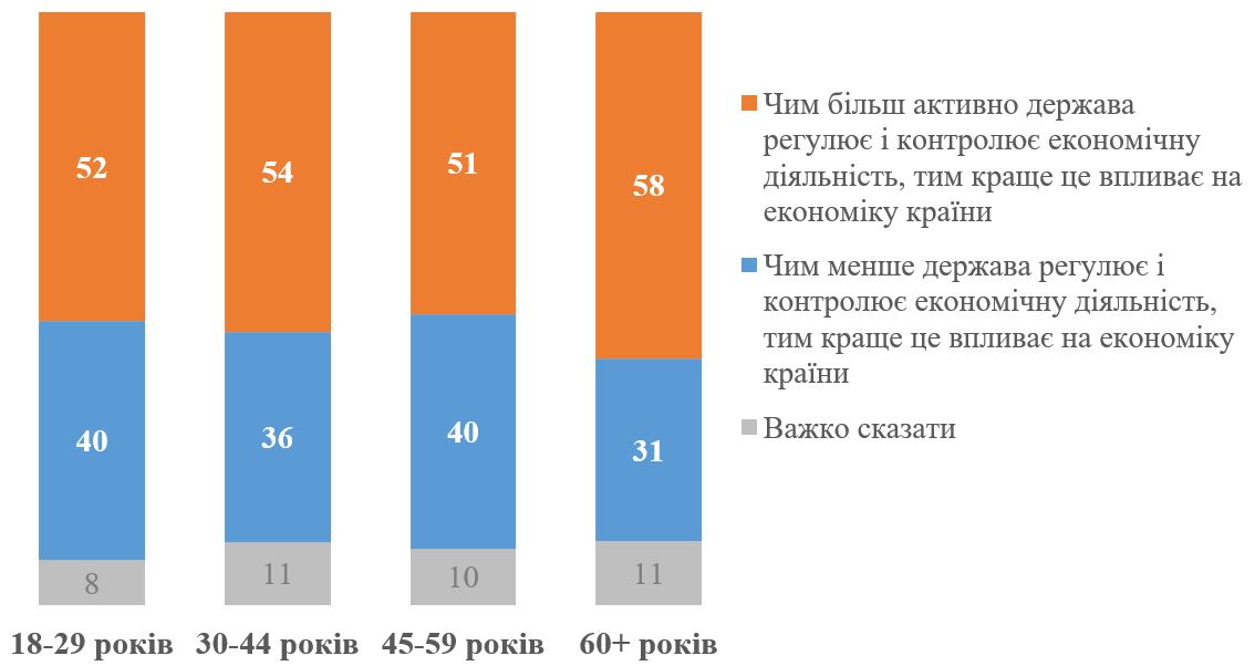 «У віковому вимірі також можна бачити практично консенсус – і серед молоді, і серед більш старших громадян переважає думка про доцільність більшого втручання держави в економіку», – зазначили соціологи.