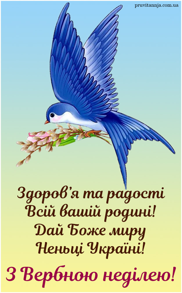 13 квітня християни східного обряду в Україні відзначають Вербну неділю або свято Входу Господнього в Єрусалим. У цей день освячують вербу у храмах. Також в цей день прийнято надсилати привітання родичам, друзям та близьким.