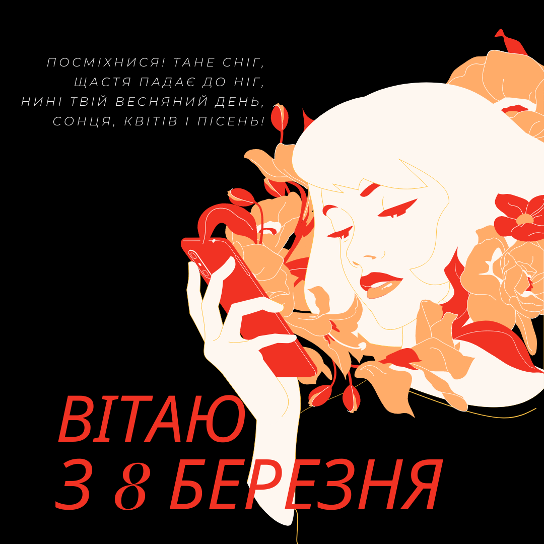 Дорогі жінки, вітаємо вас з Міжнародним жіночим днем! Бажаємо вам тепла і любові в серцях, чудового настрою і прекрасного самопочуття. Будьте красиві, щасливі, даруєте усмішки, радійте та отримуйте чудові враження. Ви – чарівні!
