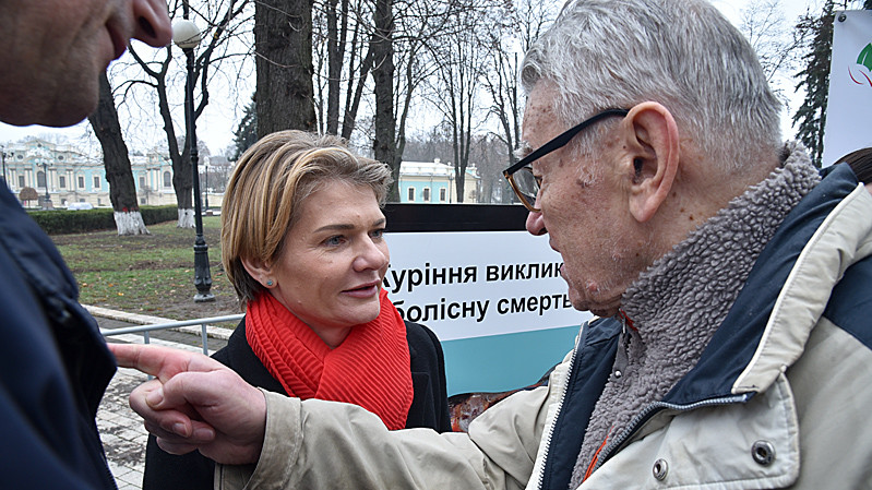 Учасники акції закликали парламент запровадити в Україні стандартизовані пачки сигарет з великими зображеннями хвороб.