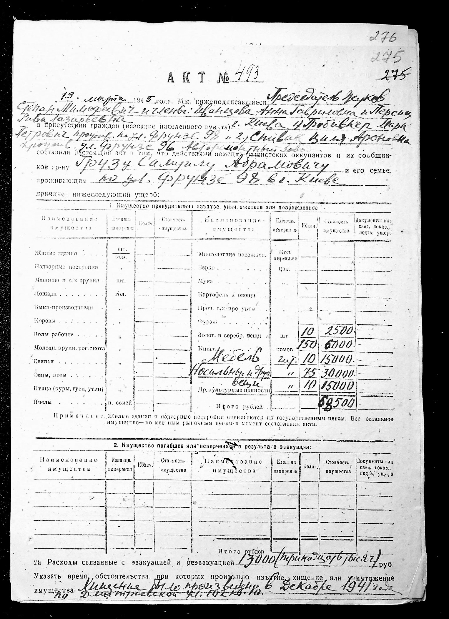 «Дані представляють інтерес для дослідження складу післявоєнного населення: тих, хто пережив окупацію, повернувся з евакуації, приїхав з інших регіонів. А також для дослідження довоєнного і воєнного побуту киян», – зазначив кандидат історичних наук, старший науковий співробітник Меморіального центру Голокосту «Бабин Яр» Олександр Бєліков. Описи втраченого майна в цих актах подекуди дуже детальні і містять інформацію про образ життя, заняття, захоплення, ступінь заможності різних груп населення, додав науковець.