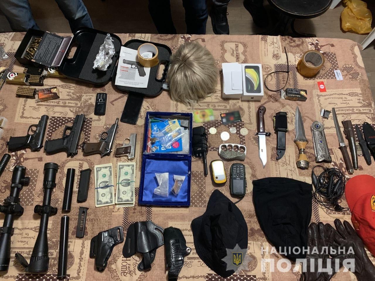 При проведенні обшуків за місцями їх проживання було вилучено велику кількість зброї різних модифікацій, боєприпаси, кастети, ножі, балаклави, рації, перуки, рукавички, мобільні телефони, банківські картки, наркотики, гроші, а також автомобілі, на яких пересувалися зловмисники.
