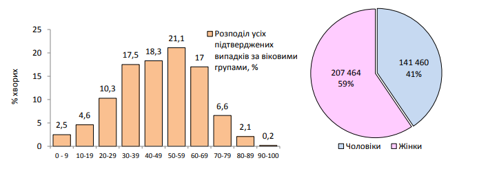 Зазначається, що 41% усіх хворих - чоловіки. Загалом за час пандемії в Україні COVID-19 виявили у 141 460 осіб чоловічої статі.
