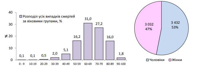 Крім того, більшість померлих через COVID-19 - чоловіки (53%).