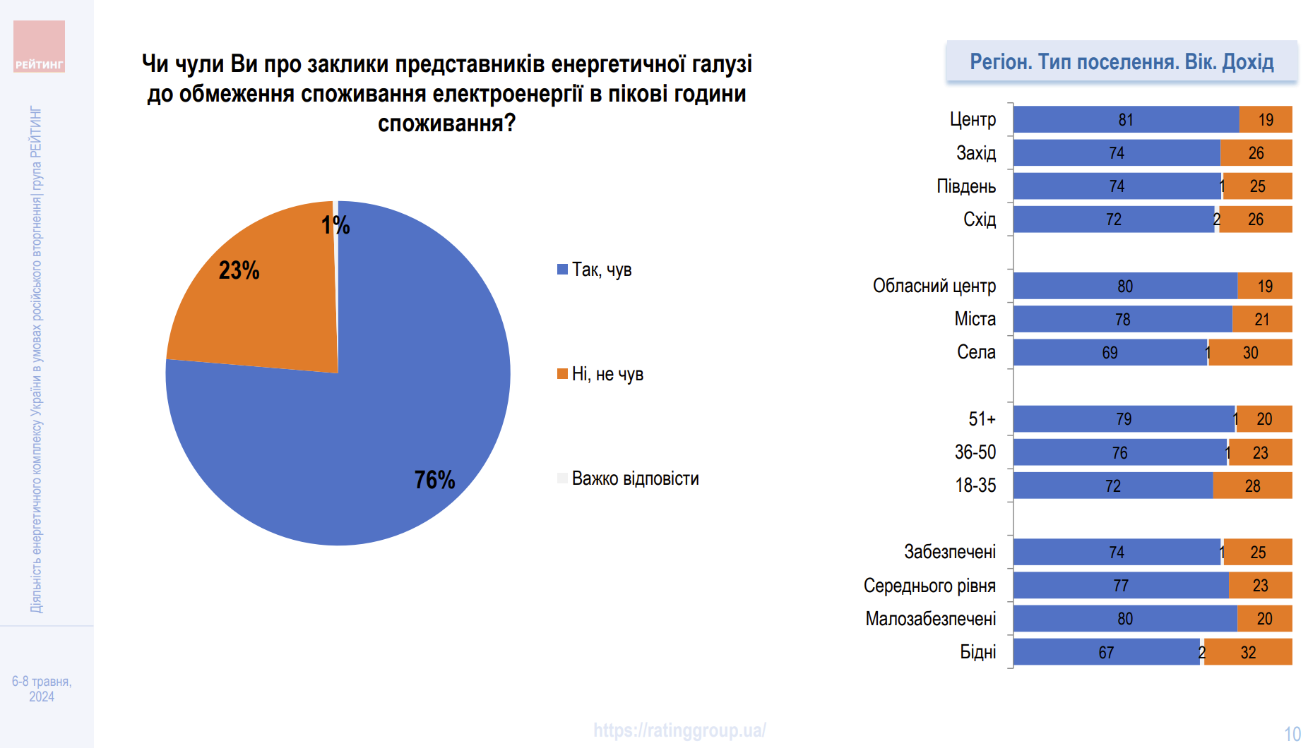 При цьому 76% опитаних респондентів чули про заклики представників енергетичної сфери до зменшення споживання електроенергії у пікові години.