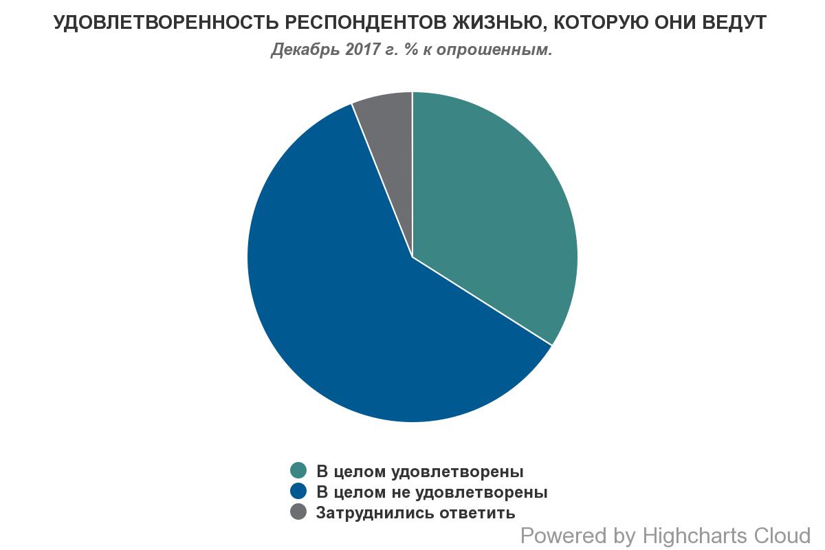 Наприкінці 2017 року лише третина українців (34%) були задоволені своїм життям, тоді як майже вдвічі більше число жителів України (60%) їх життя не задовольняло, свідчать дані опитування Research & Branding Group.