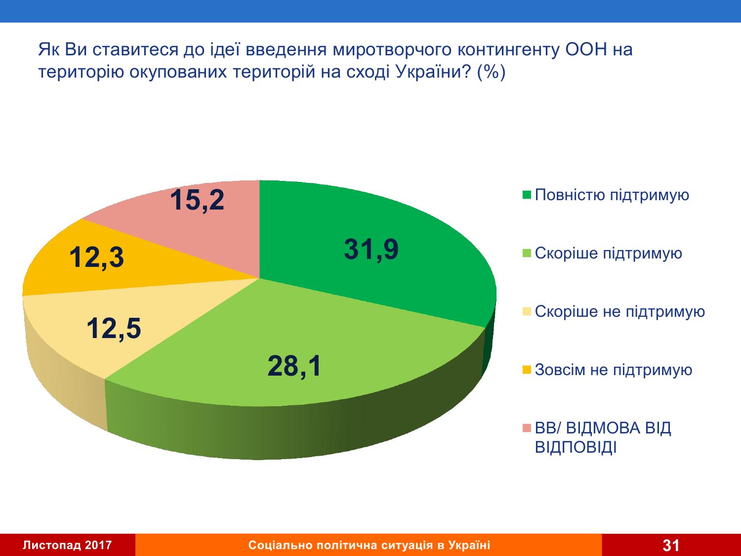 Проти миротворчих сил у Донбасі виступають 24,8% опитаних, а 15,2% респондентів відмовилися від відповіді.