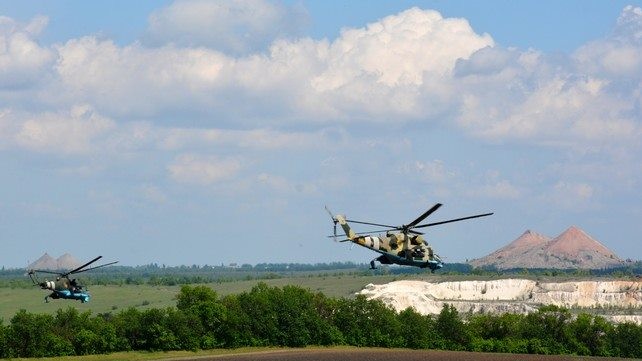 16 травня поблизу лінії розмежування в зоні Операції об'єднаних сил українські вертолітні підрозділи провели практичне авіанаведення українських екіпажів Мі-24 по умовним цілям супротивника, повідомили в прес-центрі операції Об'єднаних сил в Facebook.