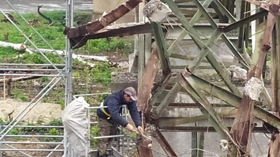 Українські ремонтники продовжують демонтаж зруйнованих конструкцій мосту, розчищають узбіччя прилеглої до нього дороги від зрізаних дерев і кущів. В ОДА повідомляють, що вже вивезено 20 кубометрів дерев.