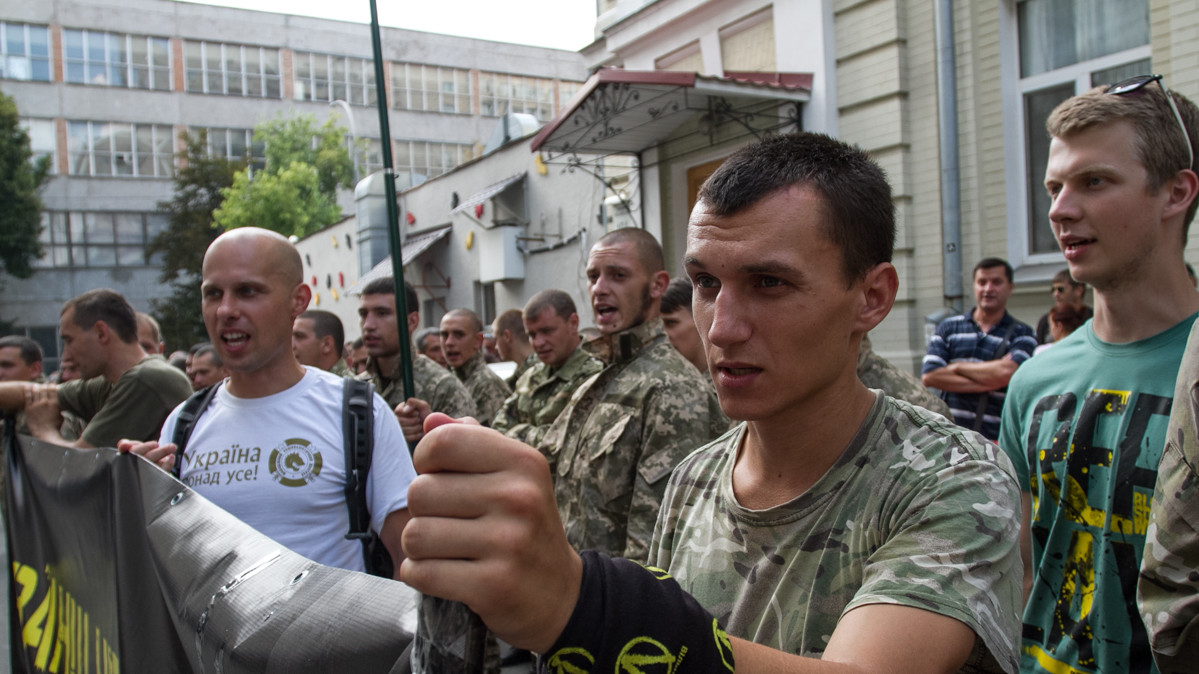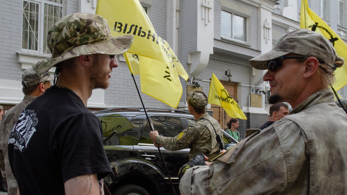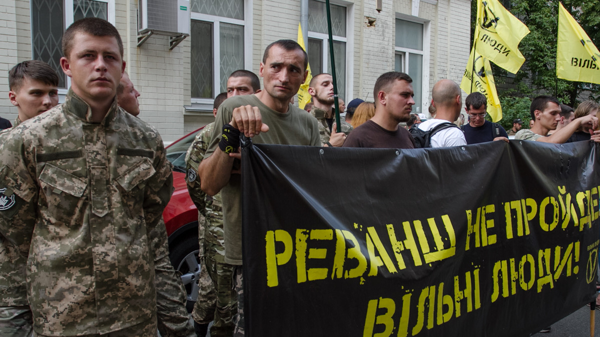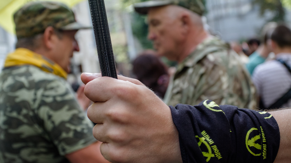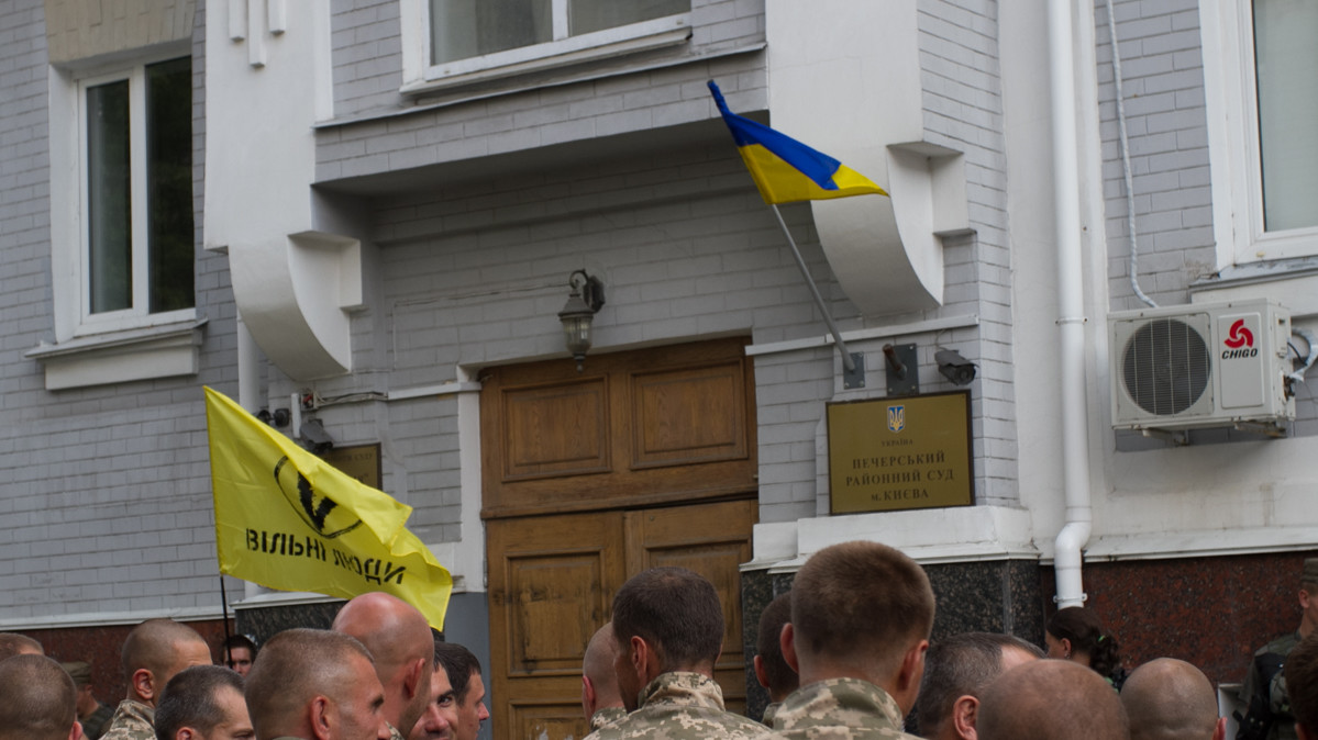 Під час засідання з обрання запобіжного заходу екс-голові фракції Партії регіонів Олександру Єфремову кілька десятків активістів провели мітинг перед будівлею Печерського суду. Серед мітингувальників - ветерани АТО, активісти з символікою "Правого сектора", батальйону "Дніпро-1", організації "Вільні Люди" та ін.