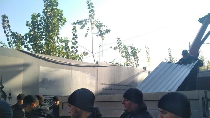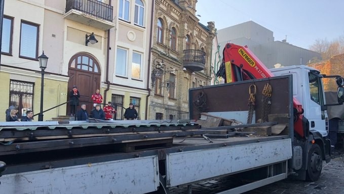 Частину паркану будівництва на Андріївському узвозі почали зносити напередодні. За словами начальника управління контролю за благоустроєм КМДА Тараса Панчія, після знесення частину паркану будуть вирішувати питання щодо демонтажу будівельного крану, який фактично працює над пішоходною зоною Андріївського узвозу.