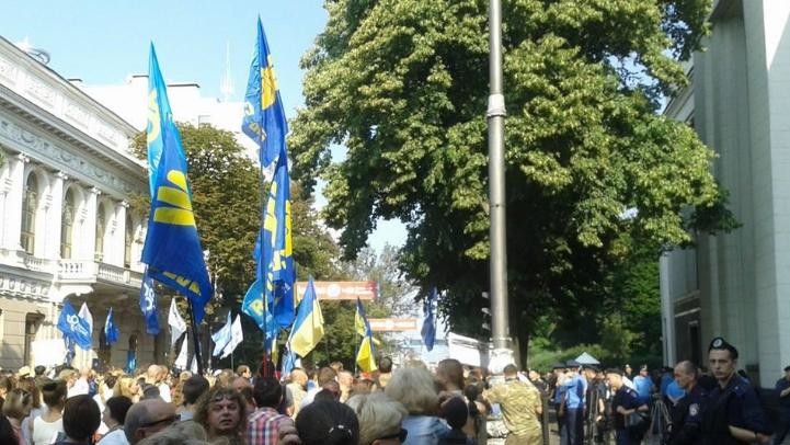 Біля парламенту мітингувальники проводять акцію з вимогою люстрації влади. Учасники акції перекривають рух автомобілів на вулиці Грушевського на ділянці біля ВР.