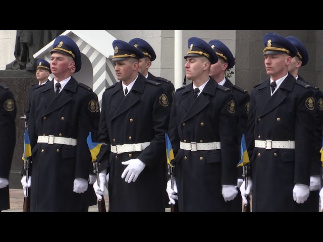 Біля будівлі Верховної Ради намайдані Конституції а Києві в неділю, 1 березня, було проведено першу церемонію урочистого підняття державного прапора і зміни почесної варти Національної гвардії, повідомляє пресцентр МВС.