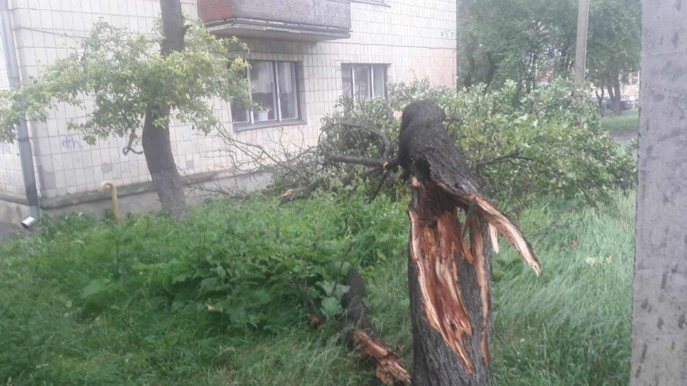 У Тернополі пройшла гроза зі шквальним вітром. Внаслідок цього в місті пошкоджено багато дерев. Кілька дерев впало на проспекті Степана Бандери. А на вул. Замковій поблизу пологового будинку блискавка навпіл перерубала ялинку.