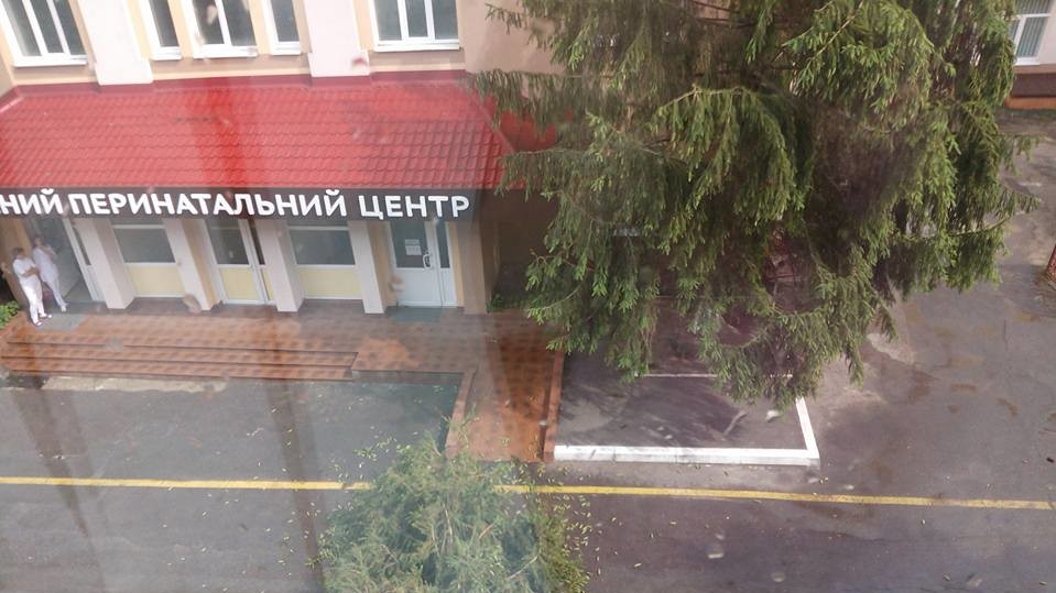 Блискавка влучила в ялинку поряд з пологовим будинком у Тернополі