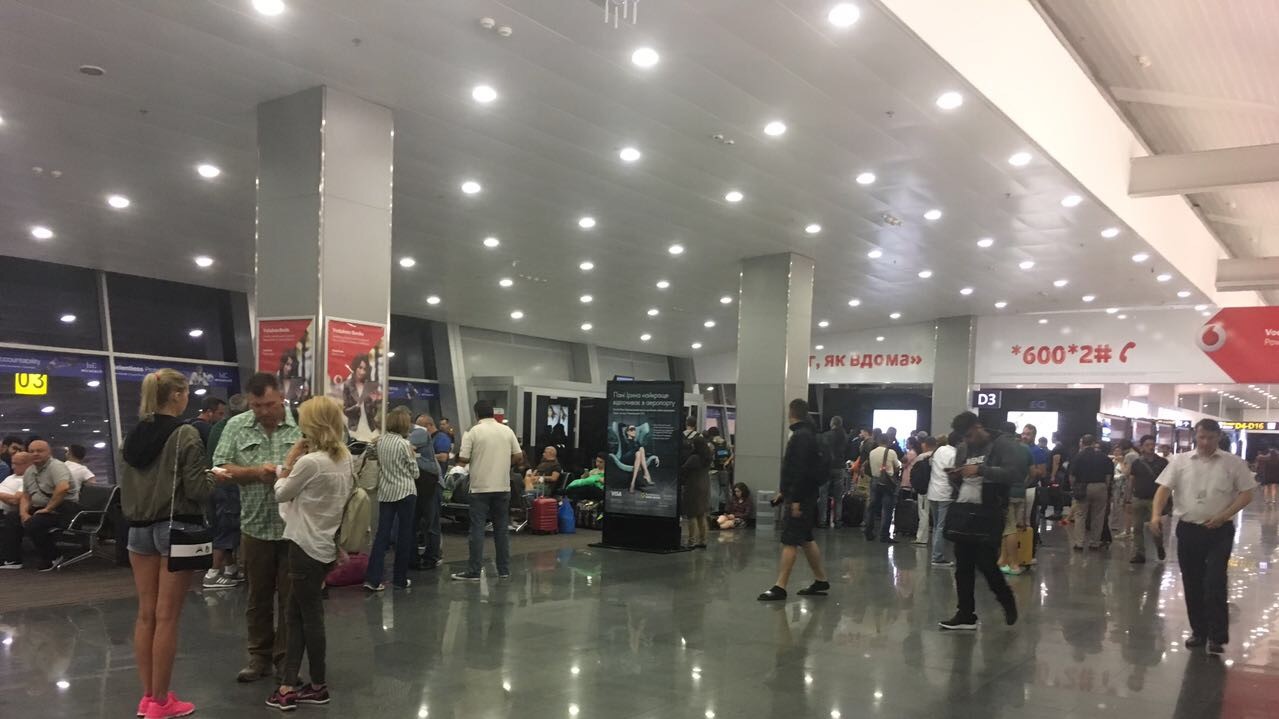 Як повідомляє 3 очевидець, рейси почали затримувати з 19:00. Таким чином, рейси затримують вже більше 3 годин. Скільки ще доведеться чекати туристам, невідомо.
