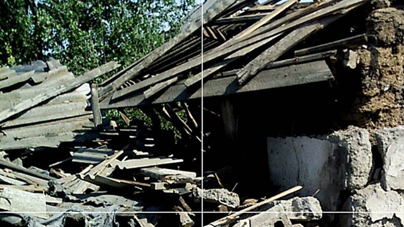 "При огляді місцевості українські спостерігачі зафіксували факт розриву 122-мм артилерійського снаряду в одному дворі по вулиці Ветеранів. У результаті потужного вибуху уламками пошкоджено стіни житлового будинку, вікна, розбите скло, а також руйнувань зазнав дах і частина підсобної господарської будівлі", - йдеться в повідомленні.