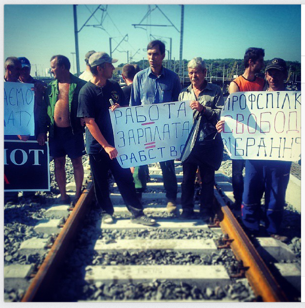 Напередодні восьмеро співробітників фірми-підрядника ТОВ "БМК Планета-Міст" оголосили так званий італійський страйк - з п'ятниці вони виходять на роботу, але не працюють. А сьогодні робітники мають намір вийти на рейки і таким чином змусити роботодавця розрахуватися.
