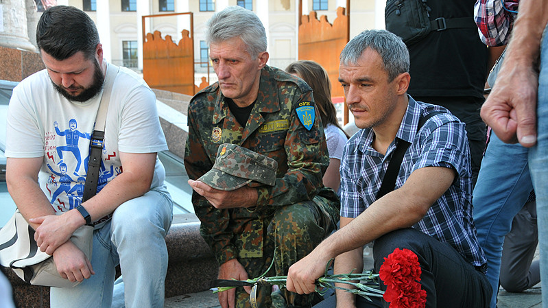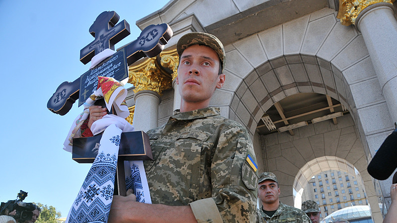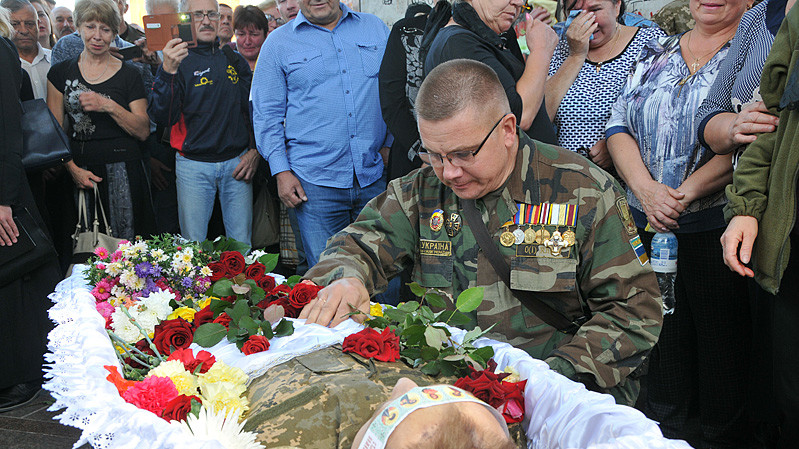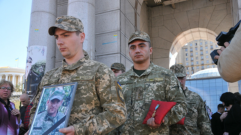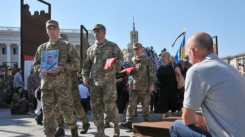 У Києві в суботу родичі, друзі та побратими попрощалися з 35-річним Володимиром Матвієнком, командиром відділення 1-ї мотопіхотної роти мотопіхотного батальйону військової частини А2167. Прощання з воїном відбулося на Майдані Незалежності.