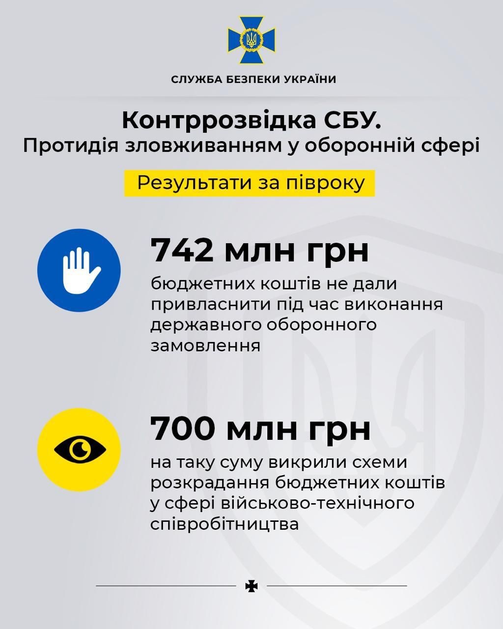 За останні півроку контррозвідка СБУ перешкодила привласненню 742 мільйонів гривень бюджетних коштів на виконанні державного оборонного замовлення. Ще понад 700 мільйонів гривень намагались вивезти через схеми розкрадань у сфері військово-технічного співробітництва і експортного контролю. Про це повідомляє пресслужба СБУ.