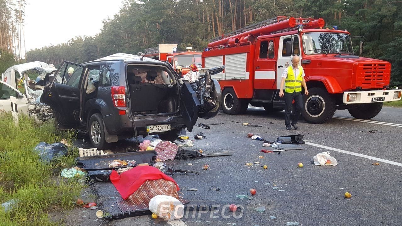 Чотири людини загинули на місці, троє постраждалих экипажі швидкої допомоги забрали у важкому стані.